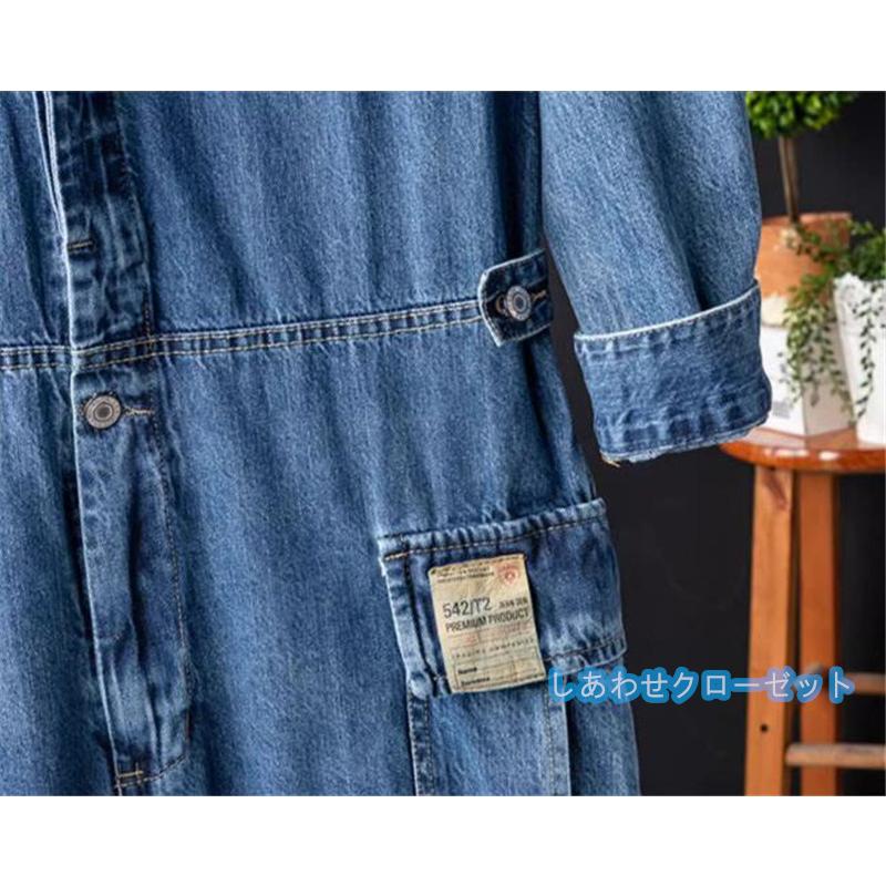 ツナギ メンズ カバーオール ジャンプスーツ デニム オールインワン サロペット オーバーオール バイカー ツーリング 春 夏 秋 冬 ストリートアメカジ 作業服